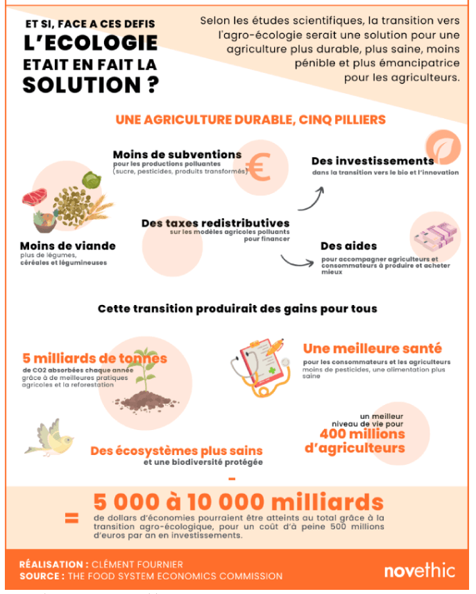 À la place d’aller dans des extrêmes, ce qui n’est jamais bon, pourquoi ne pas seulement adapter notre système de production aux réalités économiques et environnementales actuelles. C’est là-dessus qu’un groupe de chercheurs s’est penché au cours des dernières années. Les résultats scientifiques sont surprenants et encourageants. Produire de manière écologique, c’est à dire en respectant l’environnement (sans tomber dans l’extrême comme l’agriculture biologique), permettrait d’économiser 10 000 milliards de dollars par an dans le monde, de revaloriser les conditions de vie des agriculteurs, et de sauver notre planète.